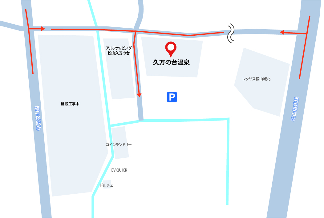 近隣施設の建築工事のため、一部の駐車場入り口がご利用いただけません。 下記、進入路をご利用いただきますようお願いいたします。